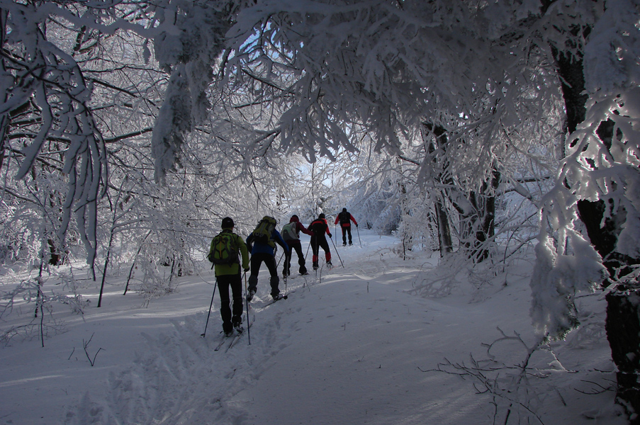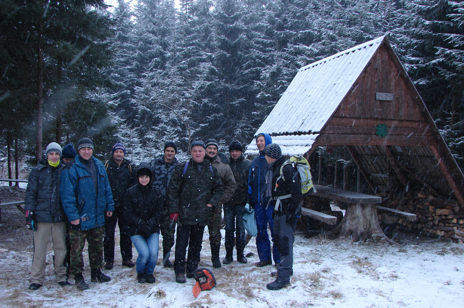 V sobotu 25.januára 2014 zorganizoval predseda Kultúrno športovej komisie Ľubo F. brigádu na nastávajúci 28. ročník prechodu Magurou. Zraz sa uskutočnil pri dome Paľka K. a odtiaľ sme sa autami odviezli až k prístrešku na Petrovke. Duško F. skontroloval, či z jesene ostala sekera na pôvodnom mieste a po zaujímavom Vilovom nápade pribiť bežku na strom, sme sa rozdelili do dvoch skupín. Prvá skupina tvorená Ľubom, Vilom, Dušanom, Jánom, Petrom a Milošom smerovala na hrebeň Magury na Šubovku. Prvá časť trasy bola pekne vyčistená, ale pod Šubovkou…