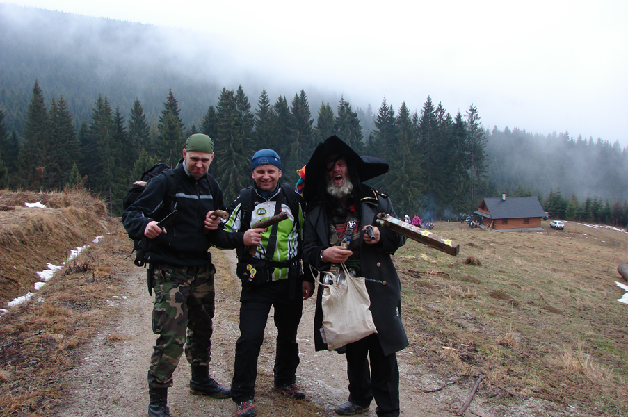 V sobotu 8.februára 2014 sa konal 38.ročník prechodu Chlebnickým okruhom. Po iné roky bolo vyše pol metra snehu a mrazy pod -20°C, no tento rok to bol asi prvý ročník, kedy nebol sneh. Ráno pršalo a bolo teplo. Predpoveď na ďalšie hodiny bola priaznivá a tak sme neváhali a zavítali sme do Chlebníc. Tu nás organizátori privítali, zaregistrovali sme sa, vypili sme štartovné a vydali sa pešo na trať v dĺžke takmer 16 km. Boli sme piati. Ľubo, Peťa, Maja, Marcel, Danka a pes Čiko. Hneď od začiatku sa k nám pripojil maskot prechodov Vlado, ktorý nám svojimi nástrojmi plašil počas celej trate…