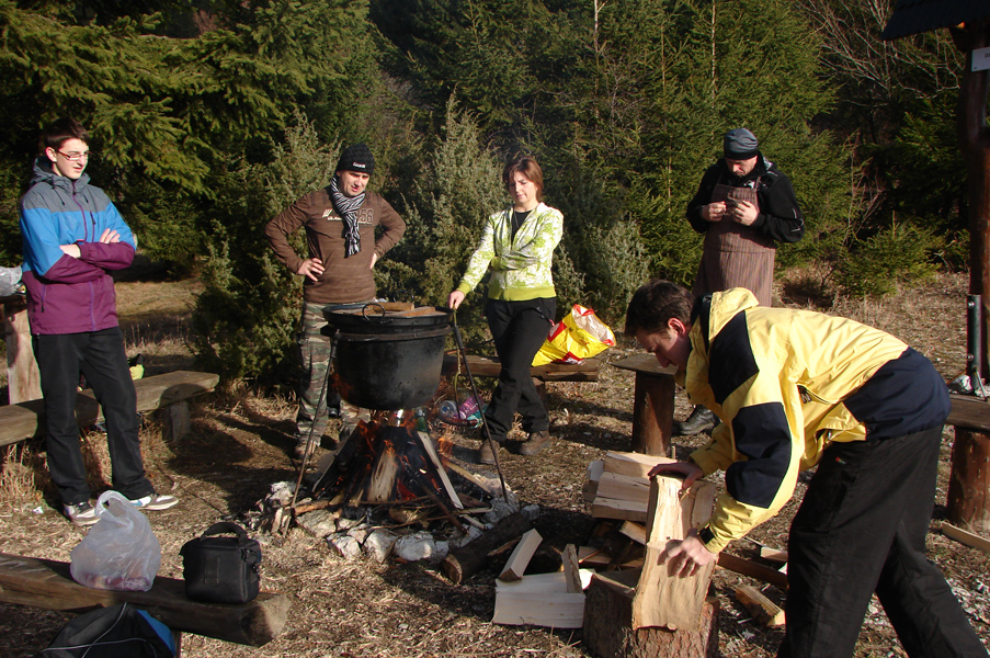 V sobotu 2.februára 2013sme sa v daždivé ráno vybrali už na 27.ročník zimného turistického prechodu Podbielanskou Magurou. Kým prvá partia vyrazila na trať už zavčasu ráno, druhá partia pripravovala pohostenie pre účastníkov prechodu v podobe chutnej kapustnice. Na prechod sa postupne aj v nepriaznivom počasí vybrala vyše stovka účastníkov. Počas stúpania na Petrovku ráno ešte snežilo, no neskôr sneh prechádzal do mrholenia. Na Petrovke bol pripravený teplý čaj, sladkosť a oheň, kde sme sa mohli zohriať a niečo chutné si aj opiecť. Zaspievali sme si…