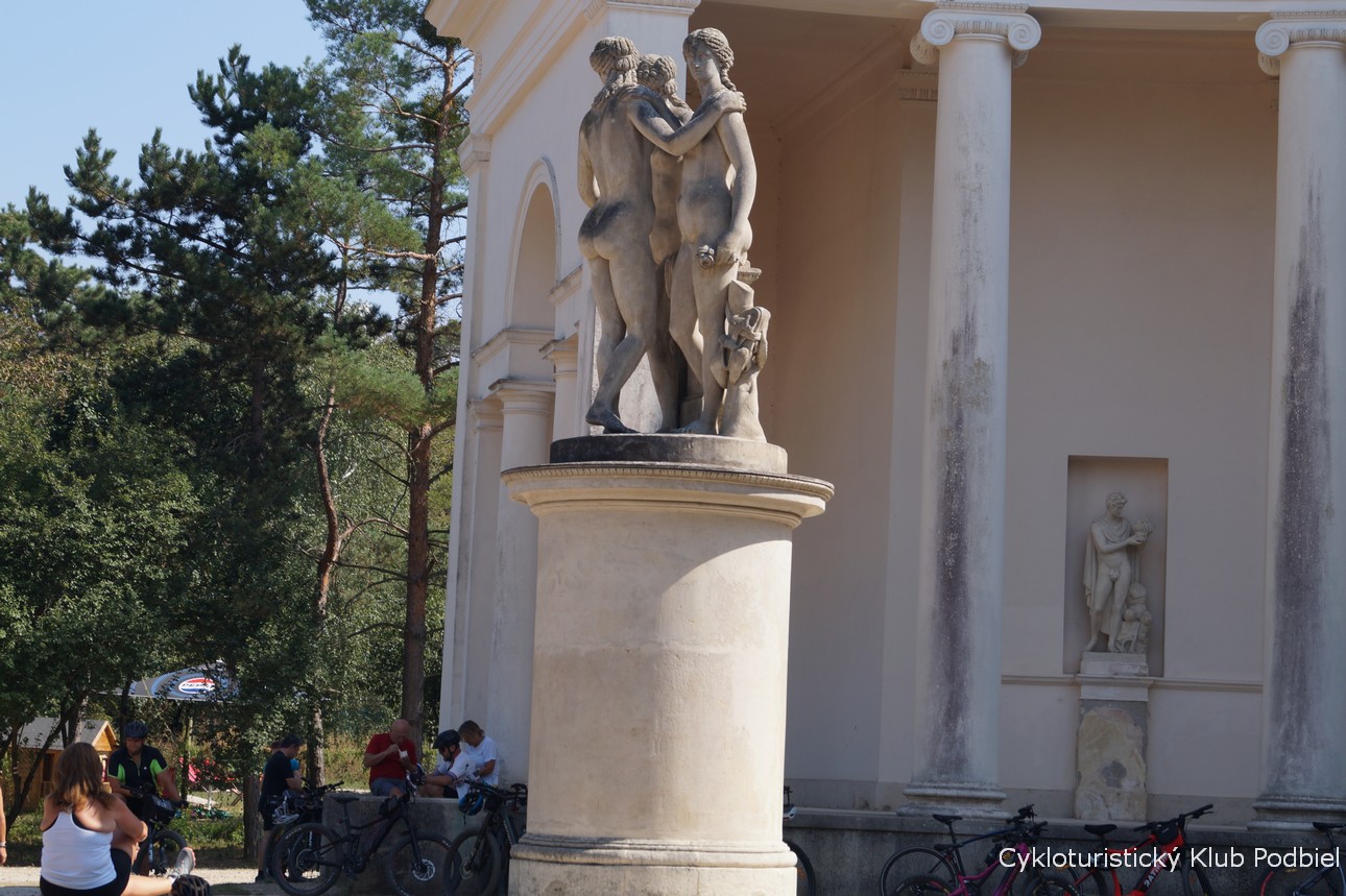 Dňa 30. augusta 2024 sa k nám pridali Danka a Marcel a spolu všetci sedemnásti sme sa vydali na 31 km dlhý okruh. Najskôr po asfaltovej, neskôr poľnej ceste smerom až na Janův hrad, ktorý bol postavený na začiatku  19. storočia podľa dobovej módy romantizmu. Išlo o napodobeninu stredovekého hradu, tvorenú štyrmi vežami, pričom každá z nich mala iný pôdorys. Vo svojej dobe slúžil na stretávanie panstva počas poľovačiek. Pri hrade sme stretli aj skupinku našich krajanov. Ďalej sme navštívili Lednický zámok, botanickú záhradu, Apollónov chrám, Chrám Troch Grácií, Kaplnku sv. Huberta a Rendez Vous – Dianin chrám. Na záver celodennej cyklotúry sme si dopriali pivko s našim kamarátom Duškom M. z Podbiela, ktorý sa tiež vybral na výlet do tohto regiónu.